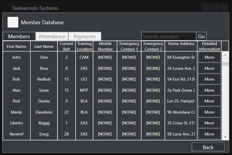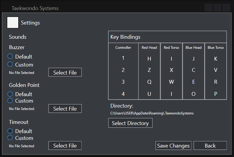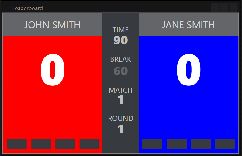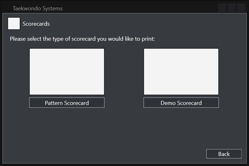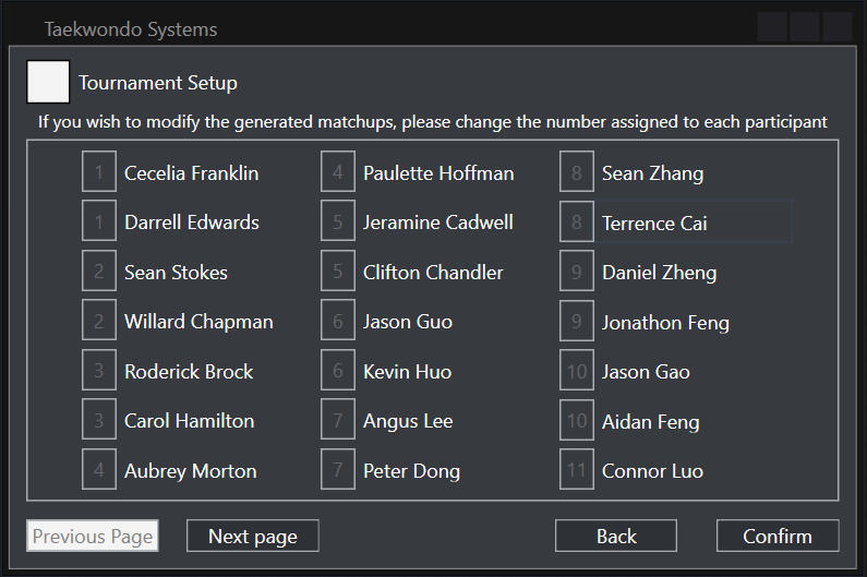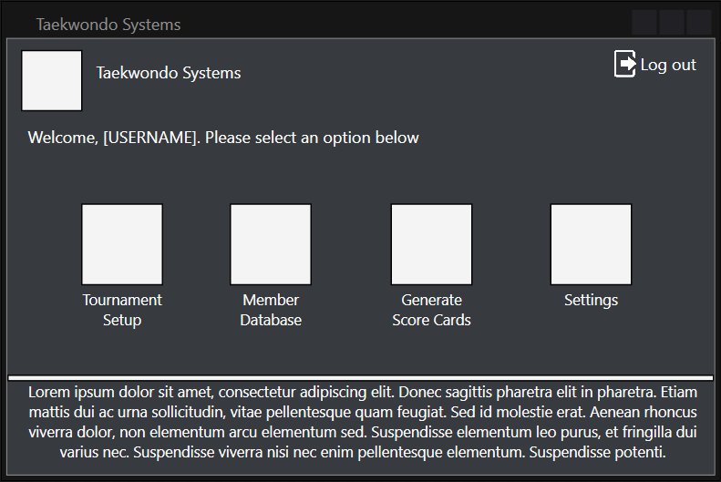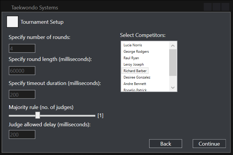 Navigation throughout the program was made user-friendly by coupling images relating to the text, enabling intuitive navigation throughout the entire program. Button sizes were increased streamlining the navigation and text boxes were also enlarged to allow for clearer presentation. The controls within the tournament control were especially enlarged accounting for the fact that it will be used in a fast-paced environment in which accurately pressing buttons may not be possible.